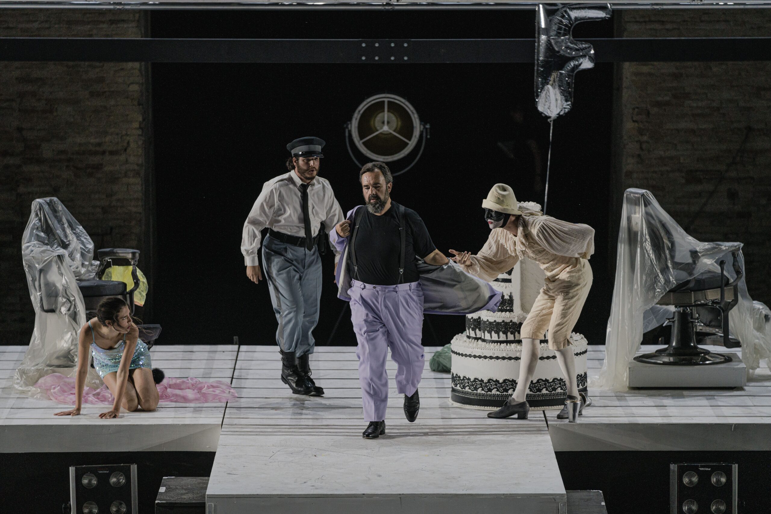 Questa opera è nel ricordo del grande regista inglese Graham Vick che aveva presieduto la giuria che scelse questo progetto nell’ambito di un concorso indetto nel 2020 per regia, scene e costumi rivolto ad artisti under 35 vinto appunto dal Mof. Daniele Menghini ha lavorato con Vick. La bravura di Menghini è quella di aver dato un ulteriore tocco di farsa alla farsa rossiniana strappando delle risate al pubblico laddove le situazioni diventavano grottesche.