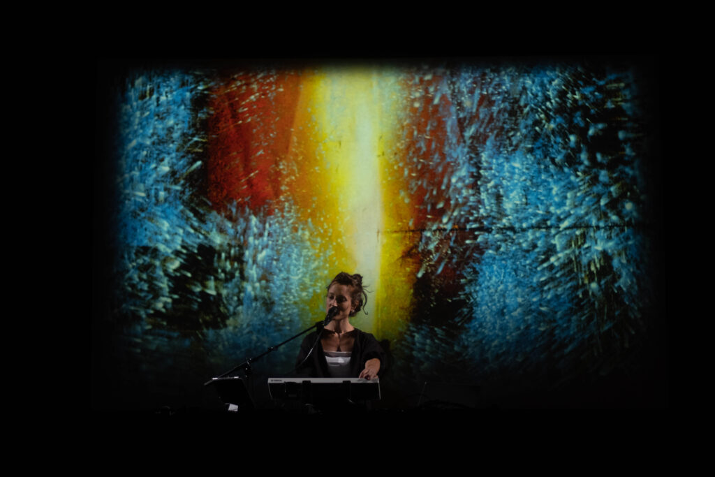 Ludovica Manzo crea un tragitto non lineare utilizzando la voce come principale sorgente sonora. Un flusso continuo in cui texture di suoni, brani originali e l’esplorazione timbrica della voce nuda sono immersi nei potenti live visual creati dall’artista multimediale, regista e performer Loredana Antonelli. Le sue cattedrali immaginarie ed i paesaggi cromatici, frutto di una ricerca su principi di pittura astratta e fenomeni percettivi-sensoriali, sono in continuo dialogo con la musica per realizzare un viaggio/racconto sinestetico.