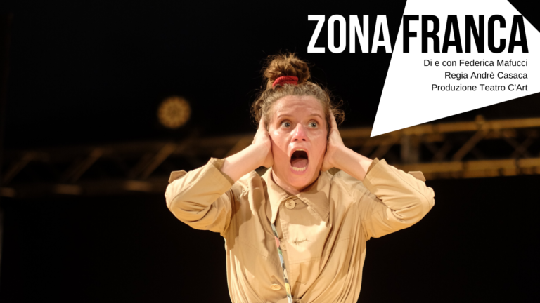 ZONA FRANCA è il territorio dove vivere la propria follia come atto di libertà. Un luogo dove venire trasportati all’interno di un mondo libero e fantasioso, ma con la profondità di una vita difficile e incerta, di Franca, la protagonista dello spettacolo. Gags tragicomiche e racconti di “storie di ordinaria follia” saranno il veicolo che Franca utilizzerà per parlare del dramma esistenziale del vivere quotidiano in modo da portare il pubblico dentro un vortice di sensazioni familiari da condividere ed esorcizzare attraverso la comicità. Uno spettacolo comico-poetico, musicale e surreale di teatro fisico. Di e con Federica Mafucci con la regia André Casaca per la produzione di Teatro C’art.