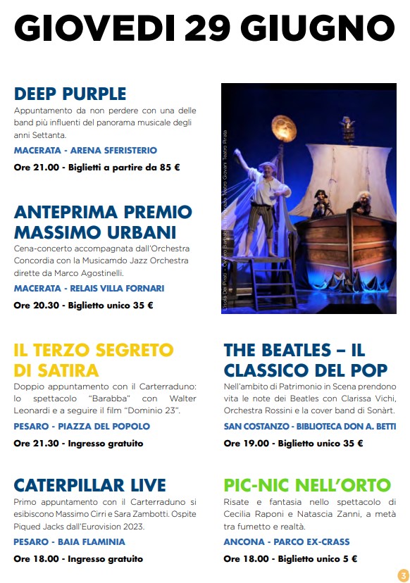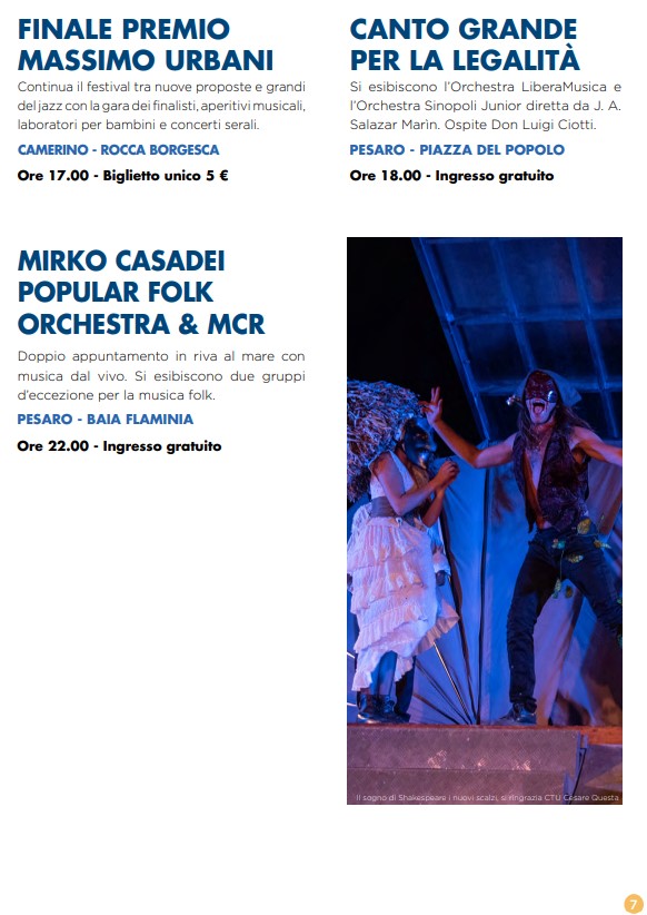 I concerti a ingresso libero sono senza prenotazione fino a esaurimento posti. Si terranno anche in caso di maltempo.